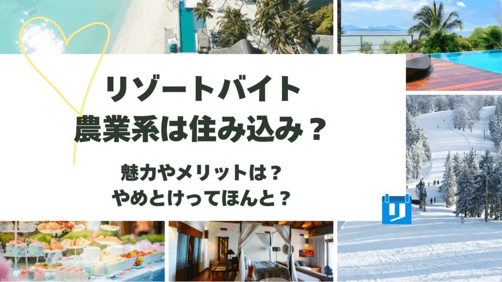 リゾートバイトといえば観光地やホテルをイメージする方が多いですが、実は農業系の住み込み求人も人気を集めています。 自然に囲まれた環境で、野菜や果物の収穫・栽培を体験できるのが大きな魅力です。 また、住み込みなら生活費を抑えつつしっかり貯金... -