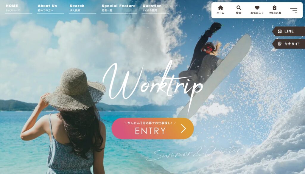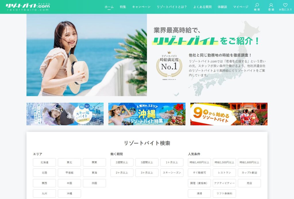 | 特色等 | ・リゾート地で住み込みで働ける求人に特化 ・オフィスが全国にあるため案件多数&サポートが充実 ・1週間ほどの短期間から3か月ほどの長期間の仕事もあり |